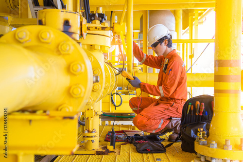 Electrical And Instrument Technician Replace Solenoid Of Shut Down Valve At Offshore Oil And Gas Remote Platform Maintenance And Service Occupational At Oil Rig Stock Photo Adobe Stock